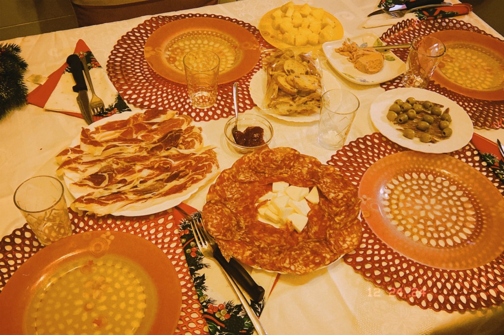 10 sillas rodeando la mesa. De fondo suenan villancicos. Sobre el mantel al menos 15 platos. Langostinos, quesos, anchoas, foie, croquetas, canapés. Y ahí está. Al final de la mesa. Un plato donde solo sobrevive una. ¿Qué hace? Si se estira, no llega. ¿Se levanta y la coge? Ya hay varios ojos fijándose en la última superviviente. ¿Si pide que le pasen el plato? Anda que no le ha echado cara. El plato pasa de una mano a otra. Antes de cogerlo se chupan los dedos y dejan las marcas de sus huellas dactilares en él. Si fuese la escena de un crimen, sería imposible descubrir quién ha sido. Todos miran el plato cuando pasa por delante de su cara. Ojalá fuera para ellos. Pero cada vez está más cerca. Los nueve le miran. Ya está en sus manos. Coge esa última por un extremo bajo la atenta mirada de 18 ojos. Se hace el silencio, pero no se cohíbe. Con valor, abre la boca y se acerca la loncha. La mastica, poco a poco. Y el plato hace su camino de vuelta. Pasando de nuevo por todos y cada uno de los dedos grasos. Miradas de decepción. Pocos sabores superan al de la última loncha de jamón de las cenas de Navidad.